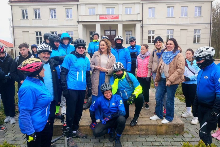 9-04-2026 – „Rowerem ku świadomości autyzmu ”  taki rajd zorganizował Zespół Szkół Ekonomiczno-Usługowych w Żychlinie. Kolor niebieski jest wyrazem solidarności z osobami będącymi w spektrum autyzmu czyli na rajdzie nie mogło zabraknąć Blue  bo to ich służbowy kolor. Spod pomnika Chopina  żegnani przez Panią dyrektor Annę Walkowiak , na trasę wyruszyło prawie trzydziestu cyklistów mimo nie za bardzo sprzyjającej aury, troszeczkę zimno , atmosfera była bardzo gorąca  no i co najważniejsze integracja szkolnej młodzieży z tą która już bardzo dawno temu zakończyła swoją edukację. WW
